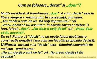 „Decât” și „Doar” sunt două dintre adverbele restrictive utilizate în limba română, greșeala apărând la folosirea unuia în locul celuilalt.
