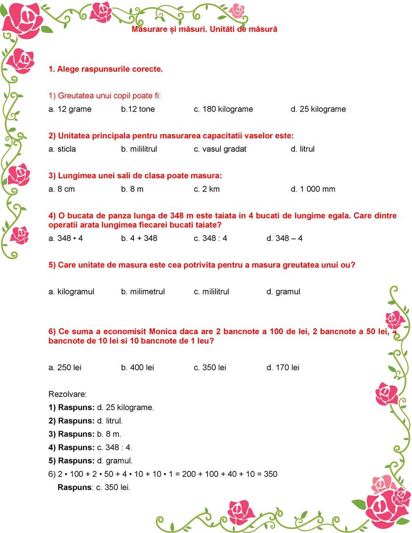 Măsurare și măsuri. Unităti de măsură. Probleme rezolvate.