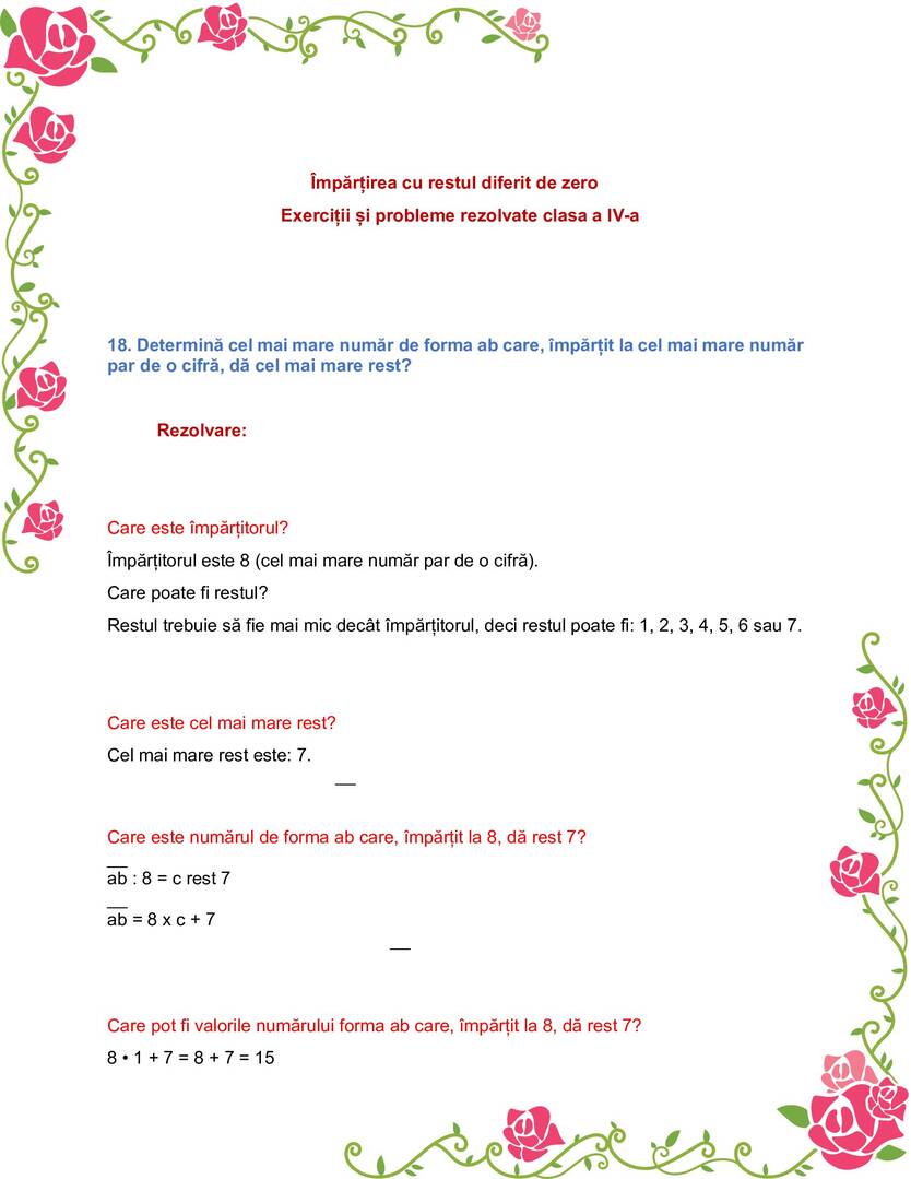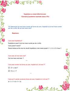 Împărțirea cu restul diferit de zero. Exerciții și probleme rezolvate clasa a IV-a