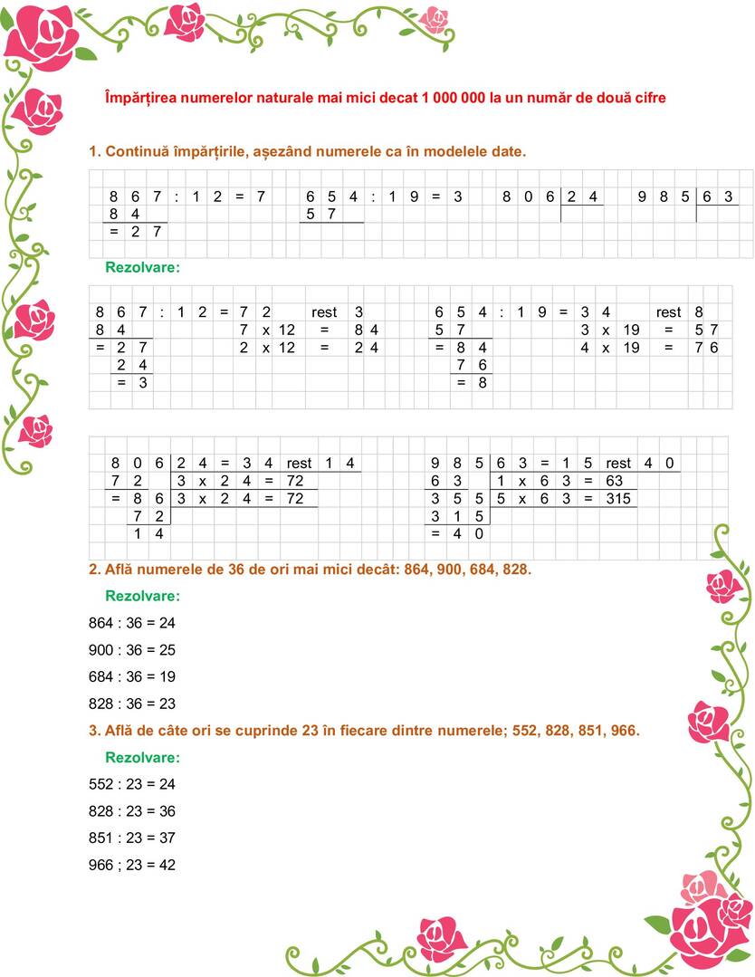🌻 Împărțirea numerelor naturale mai mici decât 1 000 000