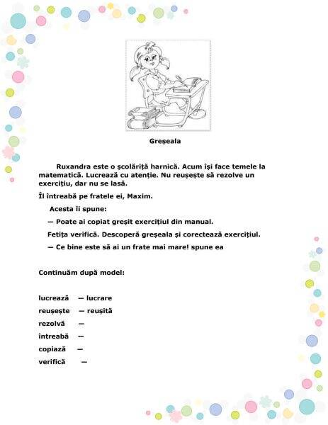 Fetița verifică. Descoperă greșeala și corectează exercițiul.