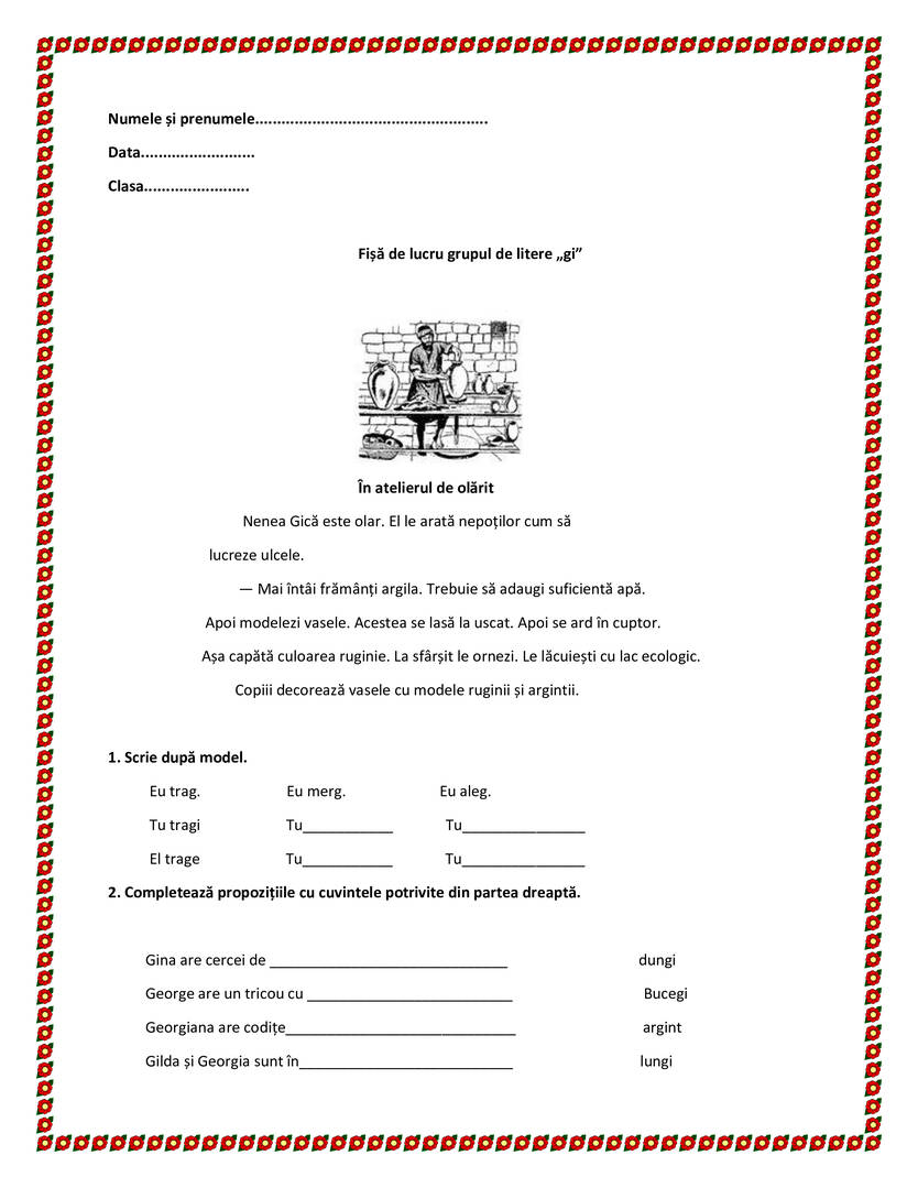 Fișă de lucru grupul de litere „gi” comunicare în limba română clasa I