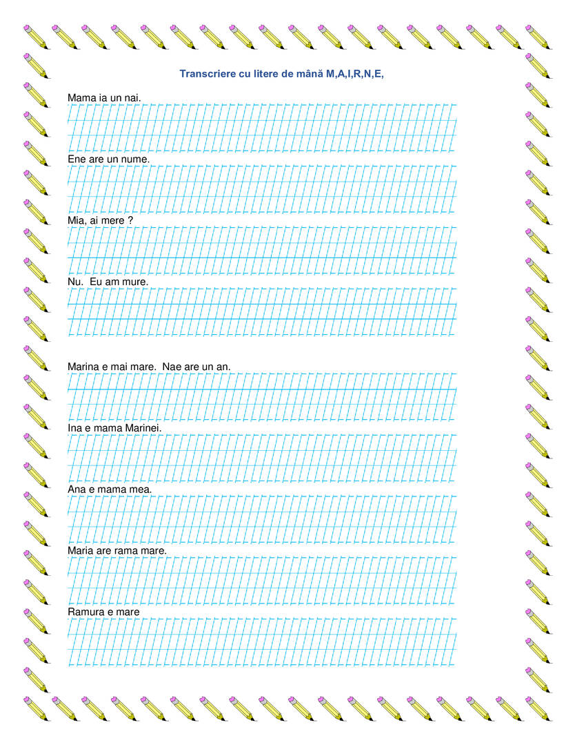 Recapitulare - Transcriere cu litere de mână a,m,r,e,i,n comunicare în limba română clasa I
