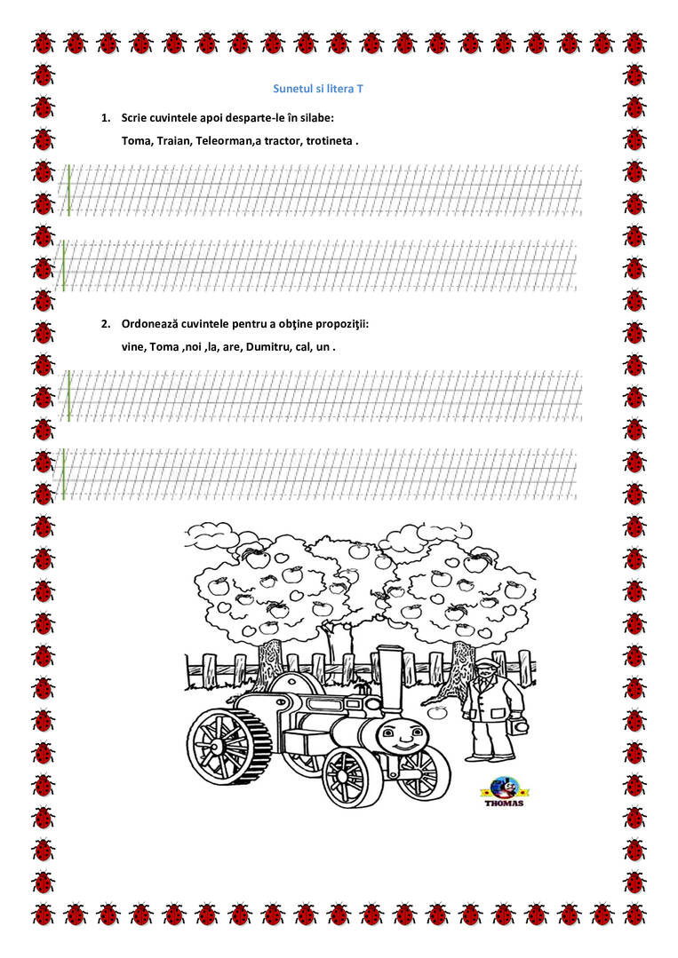 Sunetul și litera T și t. Fișă de lucru exersare comunicare în limba română clasa 1