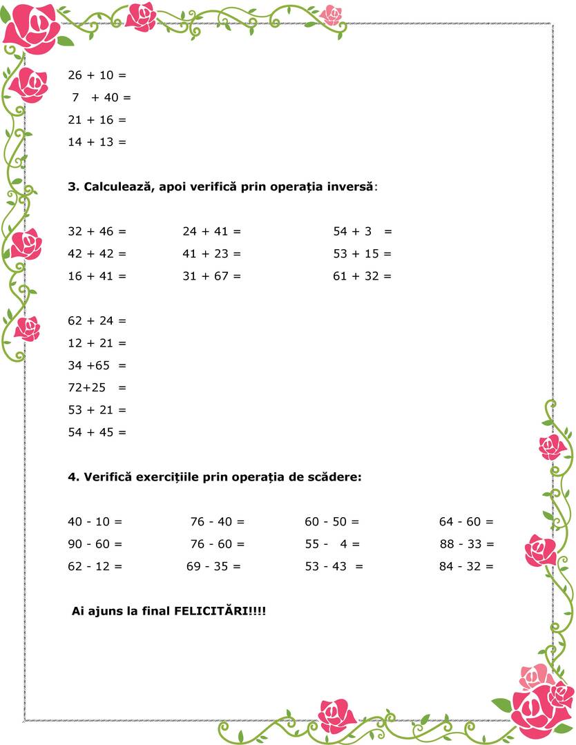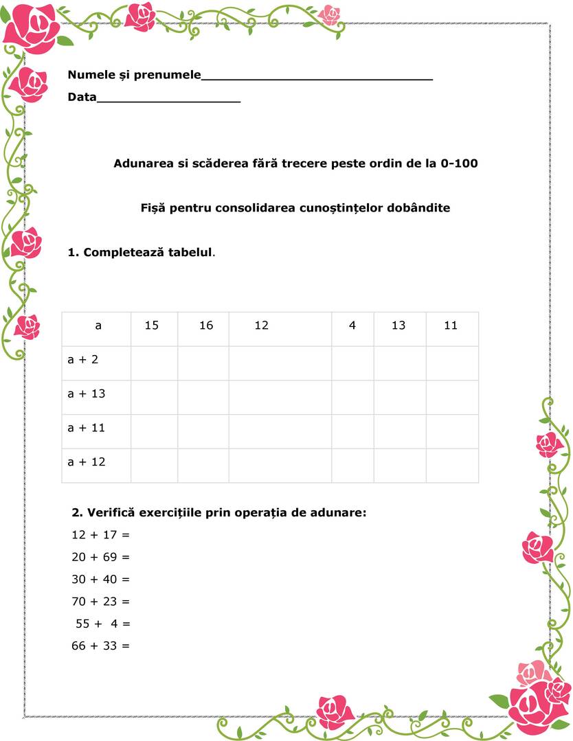 🌻 Adunarea si scăderea fără trecere peste ordin de la 0-100