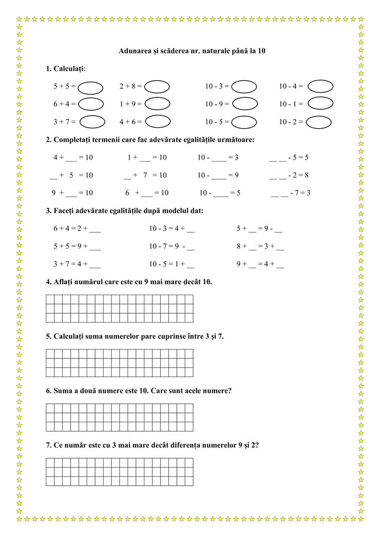 🌻 Adunarea și scăderea nr. naturale până la 10