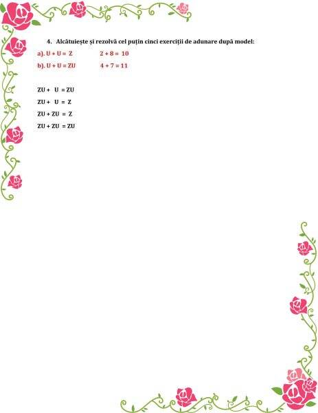 4. Alcătuiește și rezolvă cel puțin cinci exerciții de adunare după model: