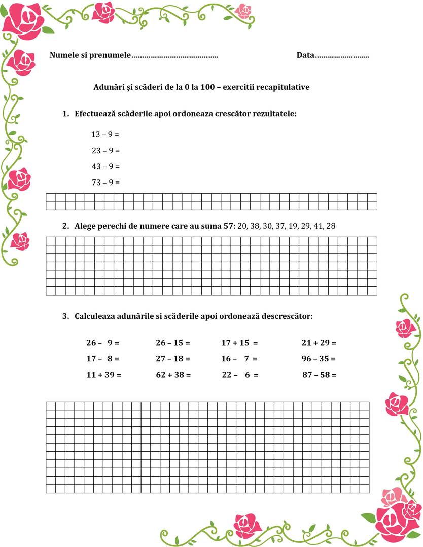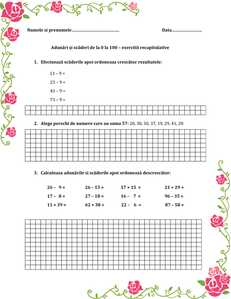 Adunări și scăderi de la 0 la 100 – Fișă de lucru clasa 1