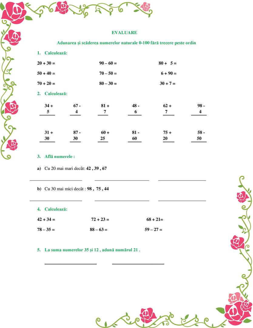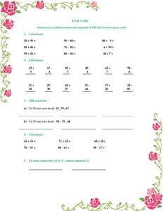 Evaluare Adunarea şi scăderea numerelor naturale 0-100 fără trecere peste ordin clasa 1
