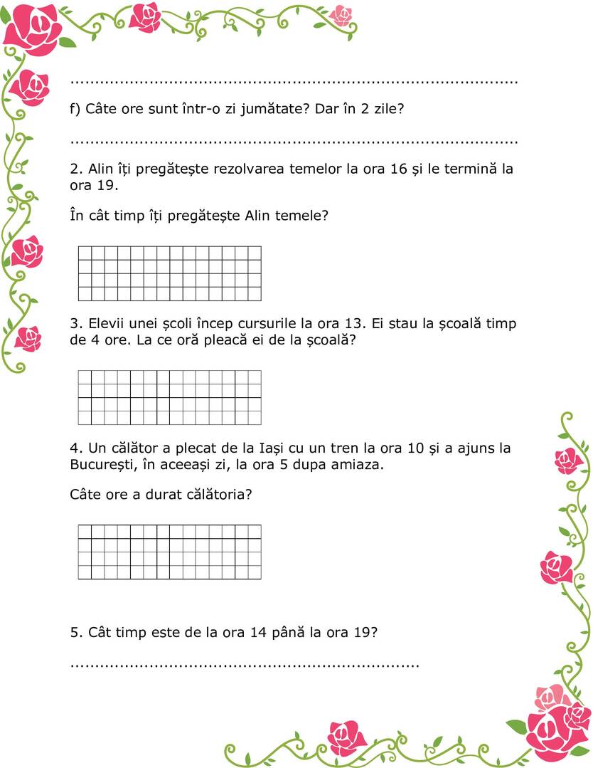 3. Elevii unei școli încep cursurile la ora 13. Ei stau la școală timp de 4 ore. La ce oră pleacă ei de la școală?