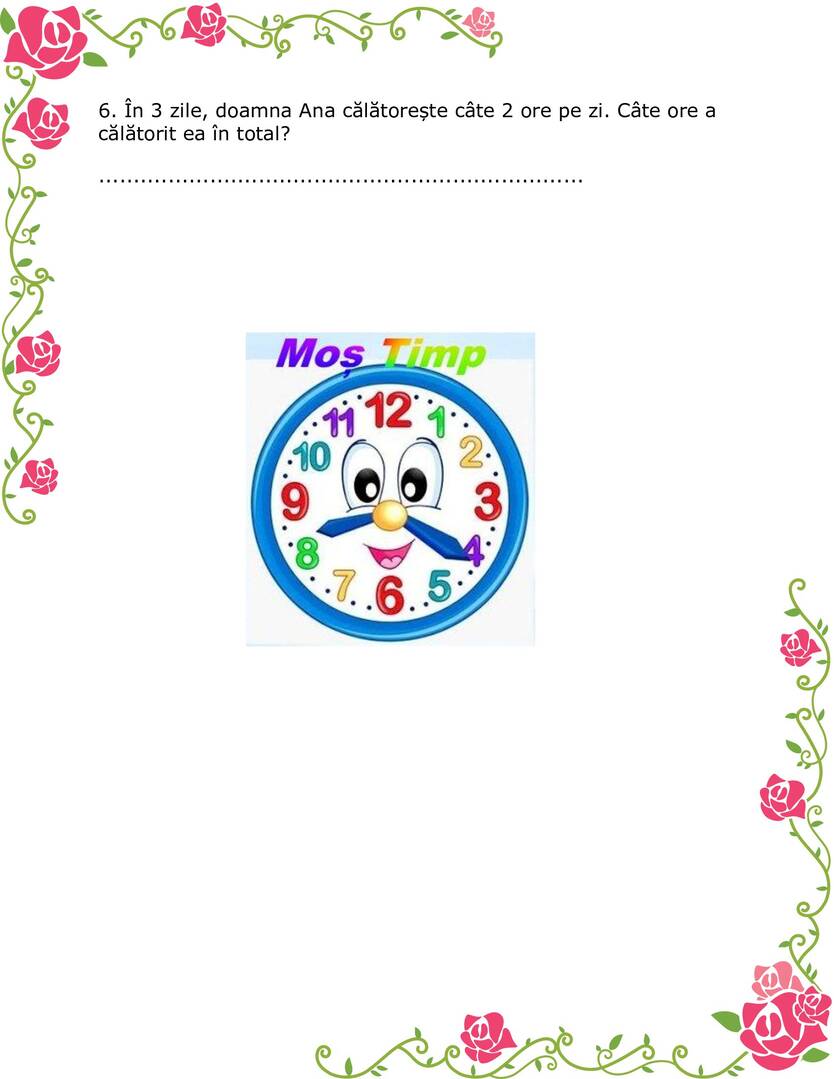 6. În 3 zile, doamna Ana călătorește câte 2 ore pe zi. Câte ore a călătorit ea în total?