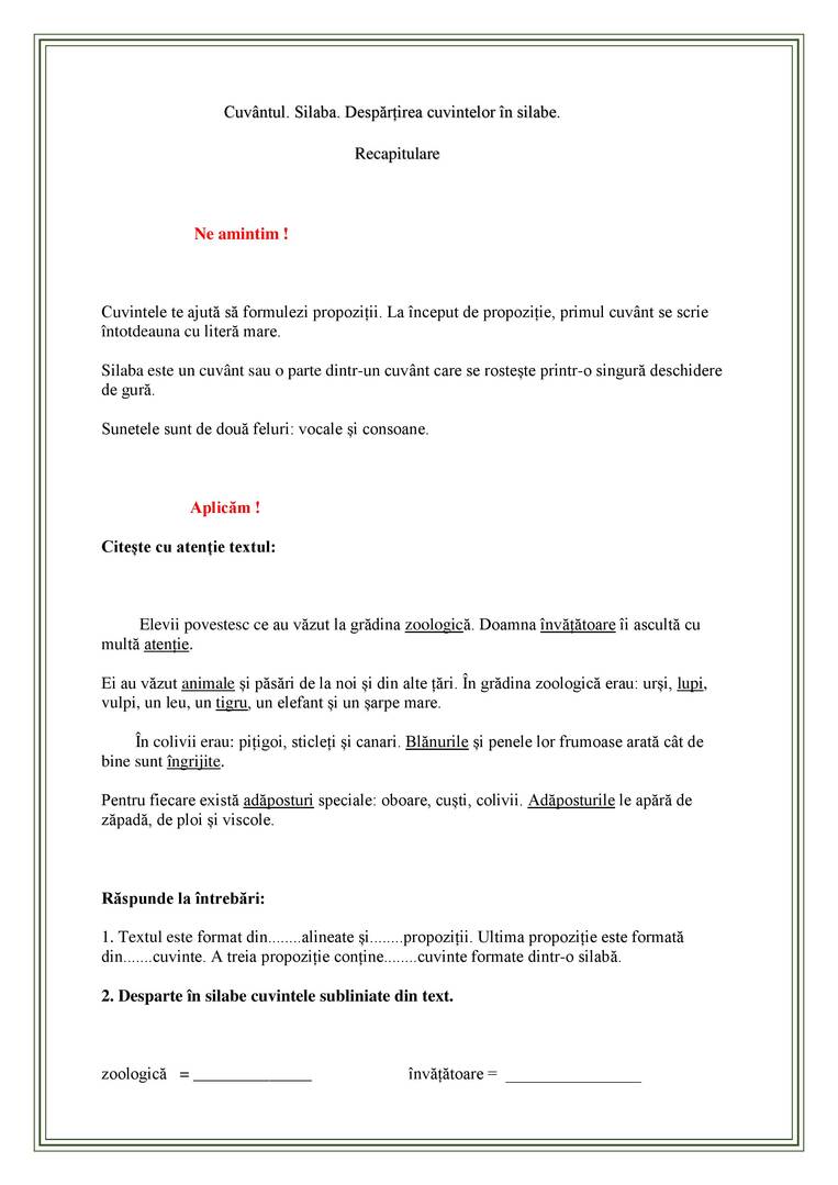 Cuvântul. Silaba. Despărțirea cuvintelor în silabe.