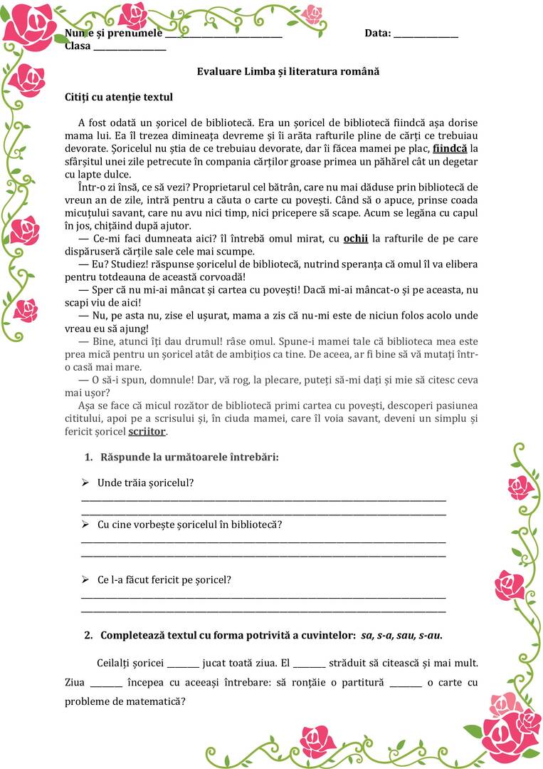 Evaluare inițială limba și literatura română clasa a III-a