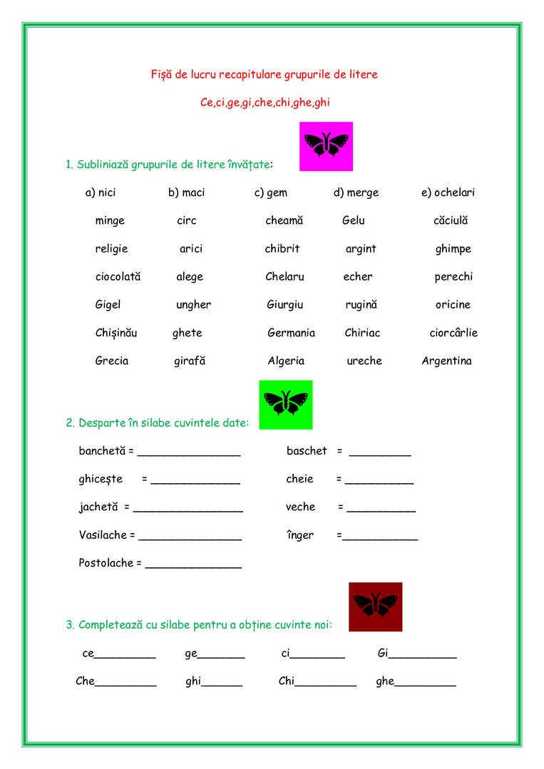 La atașamente aveți fișa de lucru Recapitulare grupurile de litere, în format word/docx