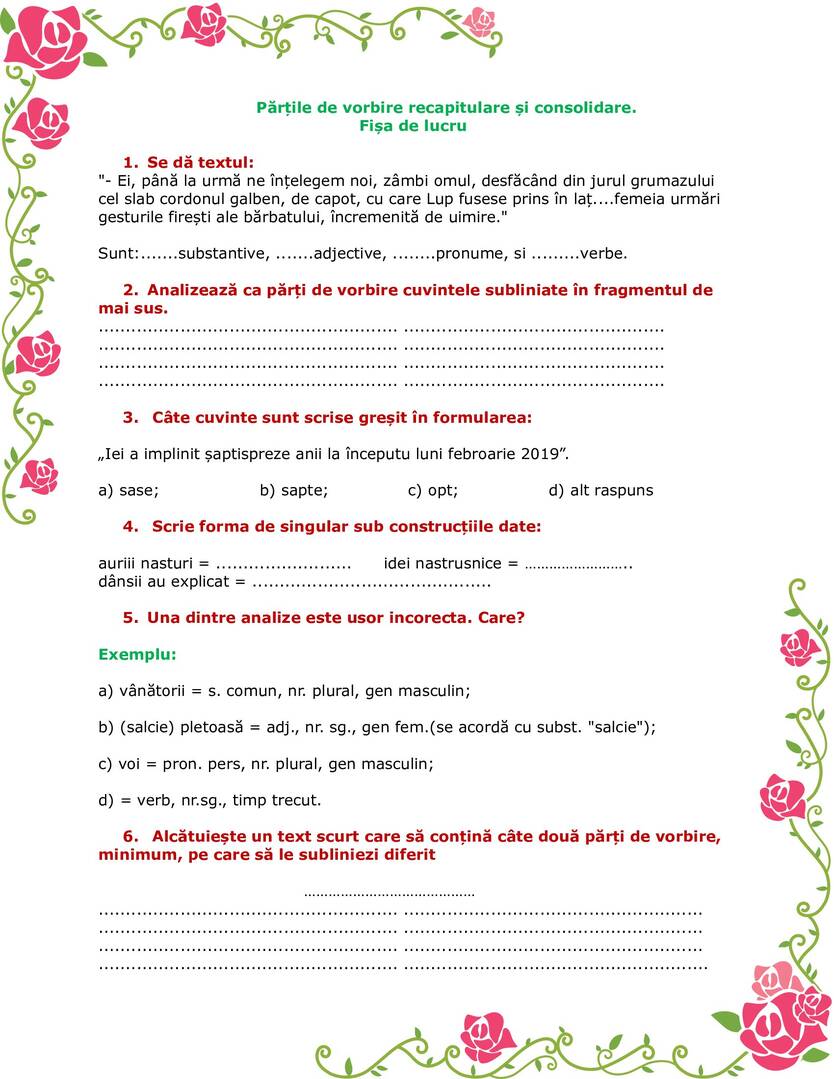 Părțile de vorbire recapitulare și consolidare - clasa a III-a