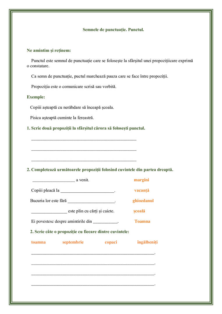 1. Scrie două propoziții la sfârșitul cărora să folosești punctul.