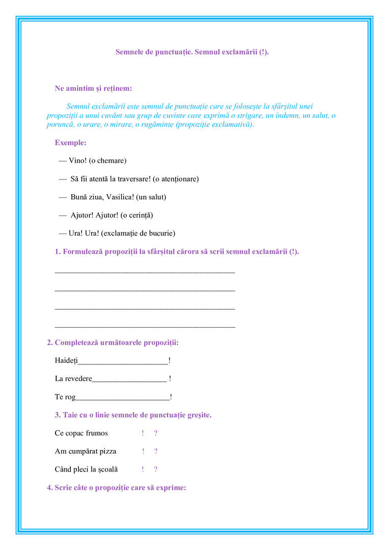 1. Formulează propoziții la sfârșitul cărora să scrii semnul exclamării (!).