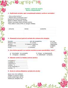 Verbul- parte de vorbire - Fișă de lucru recapitulare clasa a III-a