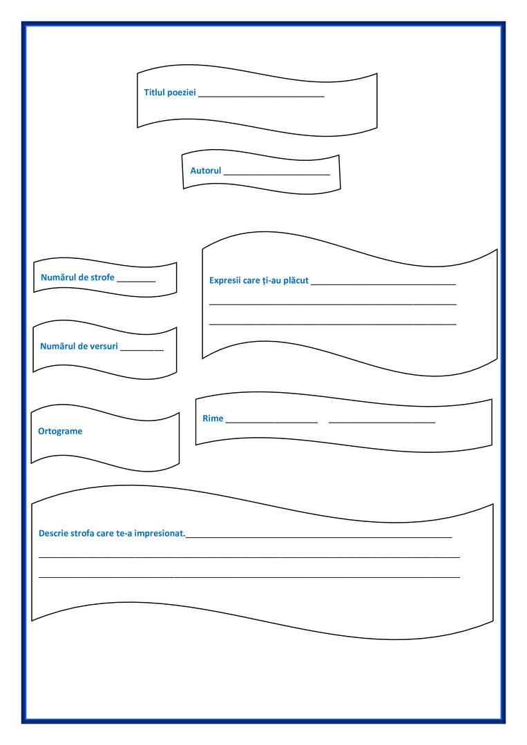 Pentru înțelegerea unei poezii la clasele primare, ne trebuie o hartă a poeziei, astfel încât putem reține mai ușor aspectele importante ale acesteia. Iată un model.