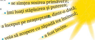 - Nu te mai lăuda atâta! i-a răspuns Primăvara. Soarele e mai puternic, el înseamnă viață, lumină, căldură pentru oameni, pentru animale, pentru plante.