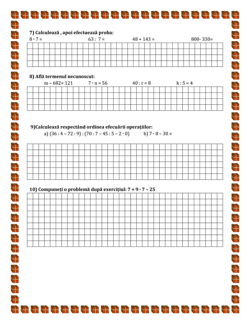 10 fișe de lucru Înmulțirea nr. naturale. Consolidare
