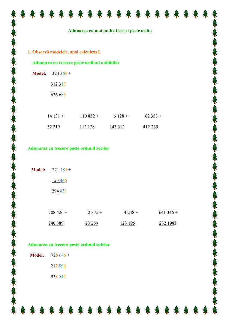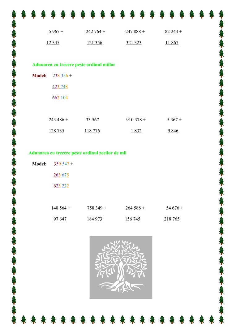 Adunarea cu mai multe treceri peste ordin - Consolidare matematică clasa a IV-a