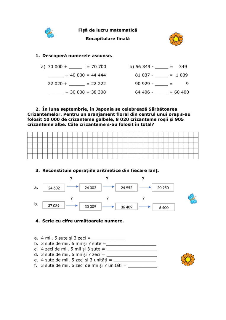 [Sticky] Fișe de lucru - Recapitulare finală - Formarea, citirea, scrierea nr. naturale