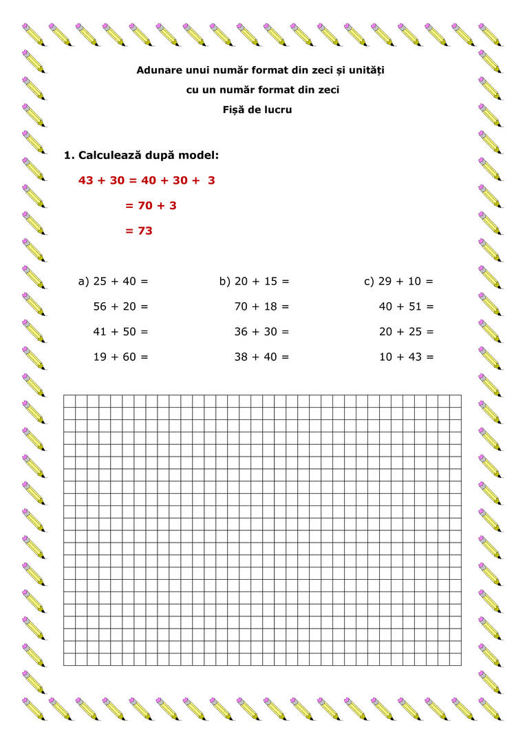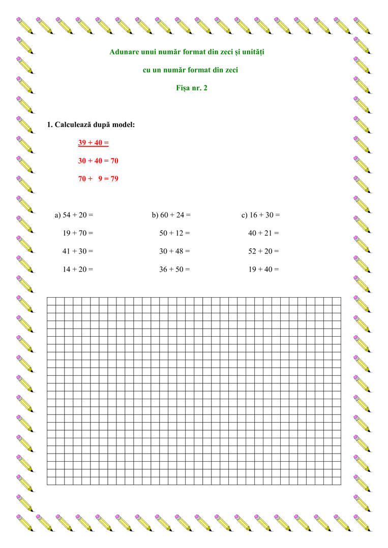 Adunare unui număr format din zeci și unități cu un număr format din zeci - Exersăm!