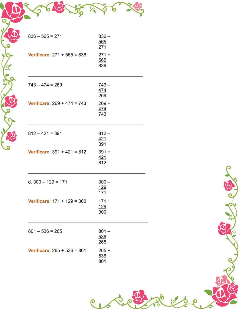 Scăderea cu trecere peste ordin în concentrul 0 – 1 000 exerciții rezolvate clasa a III-a