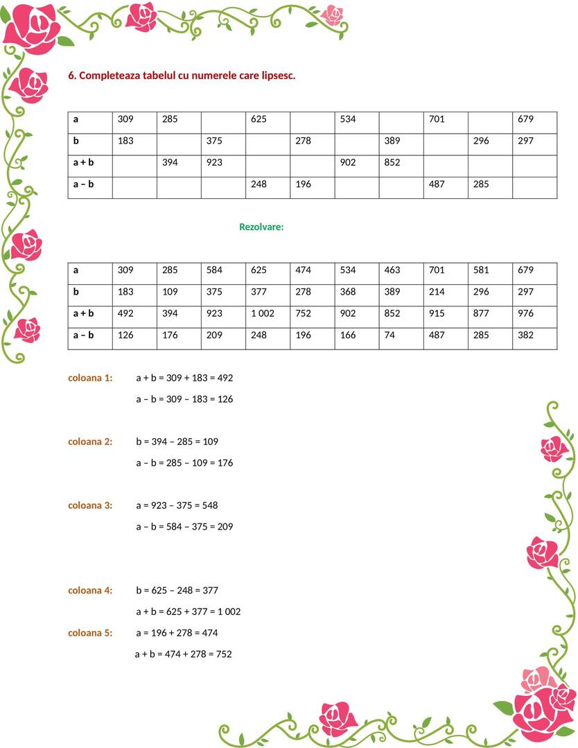 Exerciții rezolvate clasa a III-a
