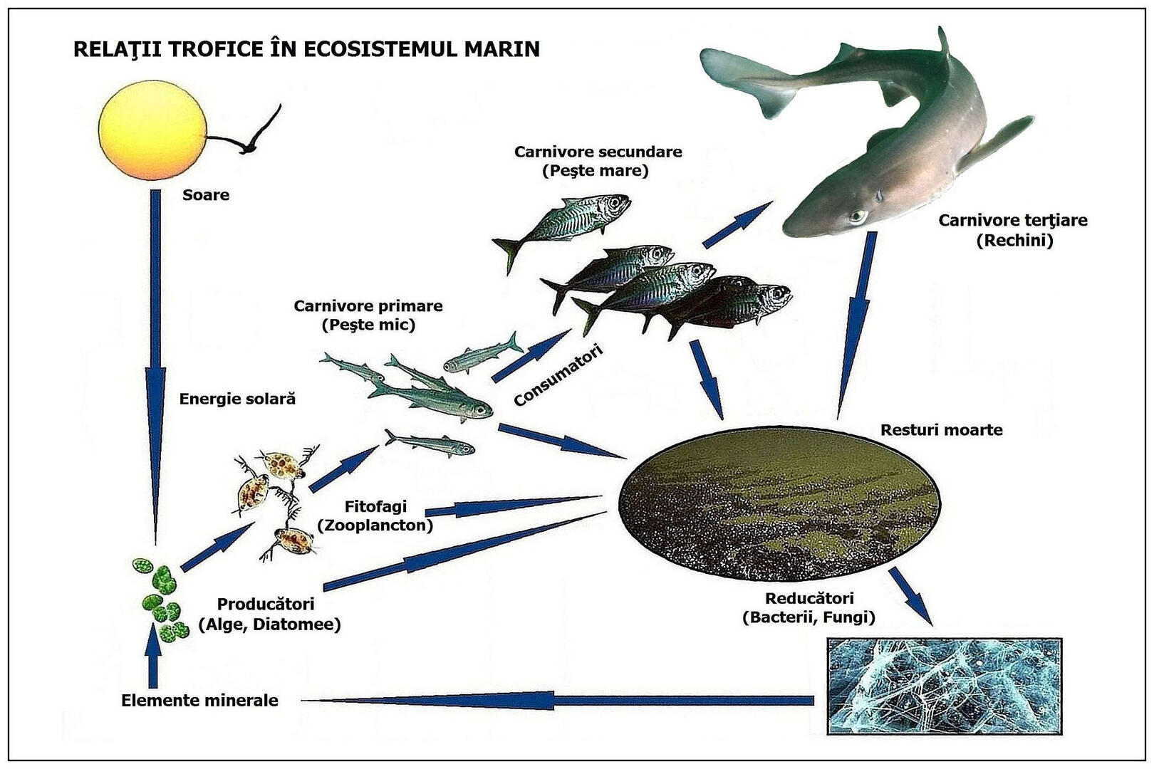 În mediul acvatic se stabilesc relații de hrănire de tipul pradă-prădător