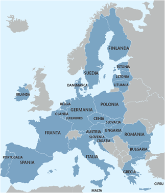 → Uniunea Europeană (numită astfel din 1993), cuprinde 27 de țări;